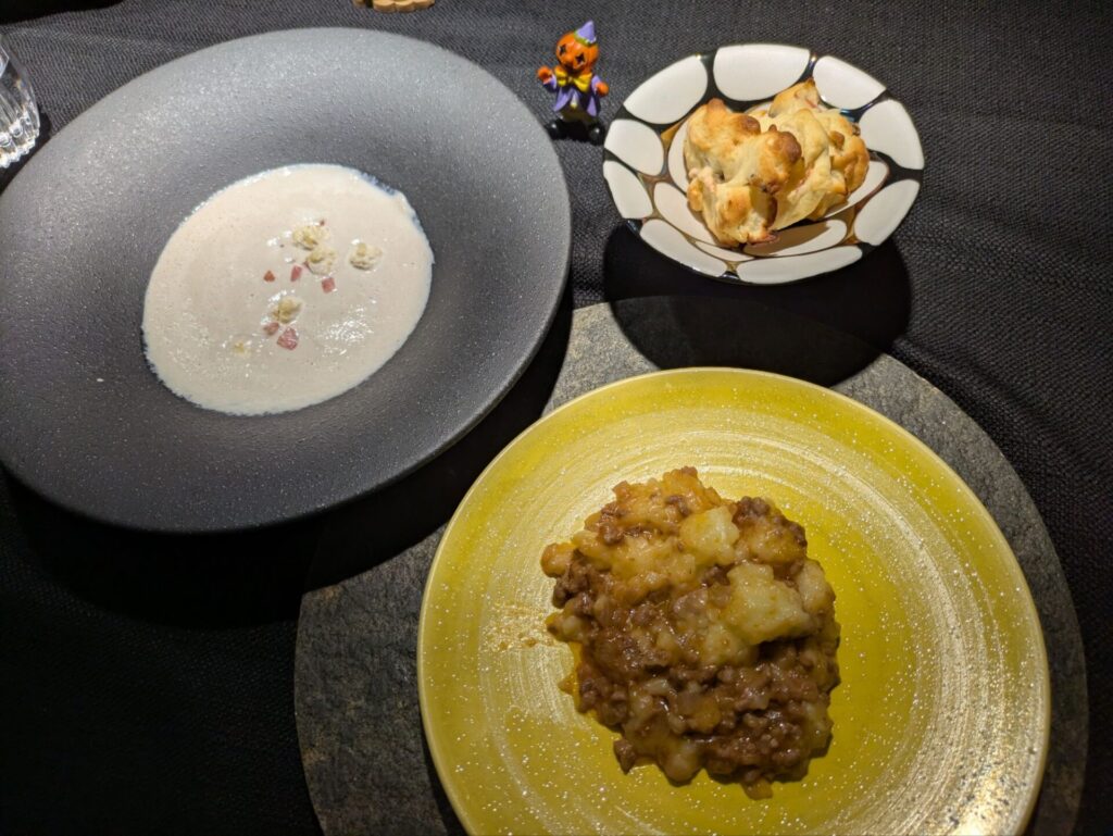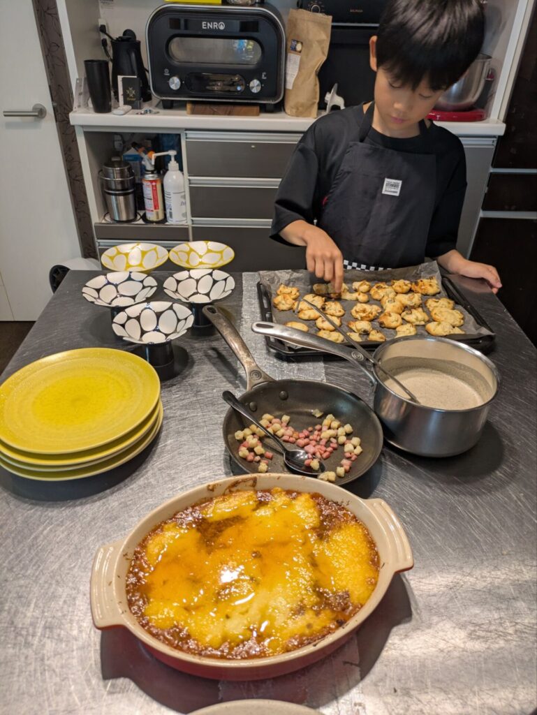ハロウィンメニュー🎃 少し早めですが、ハロウィンを意識した秋メニューです。 シェパードパイ マッシュルームポタージュ🍄🟫 りんごのソフトクッキー🍎 みんなで分担して作業を進めます シェパードパイが大人気でした。 簡単なレシピなので、ぜひお家でも作ってね。